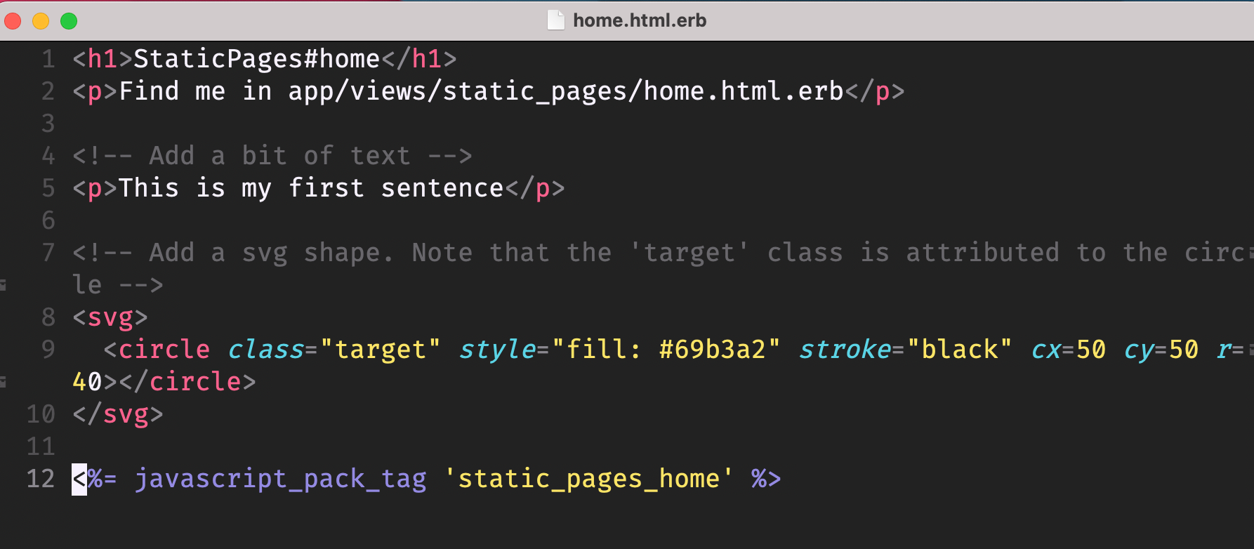 - pack을 page에 include한다. (javascript_pack_tag ‘static_pages_home’)