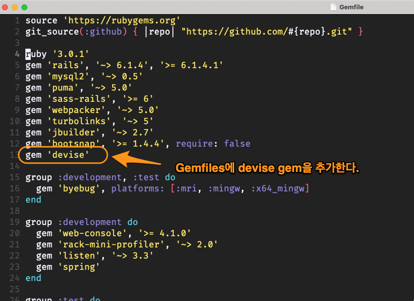 gem install byebug를 Gemfiles에서 development mode에서 설치한다. 그런 다음 debug하는 곳에 byebug라는 문장을 넣는다. 그러면 해당 문장이 실행될 때 break가 걸린다.