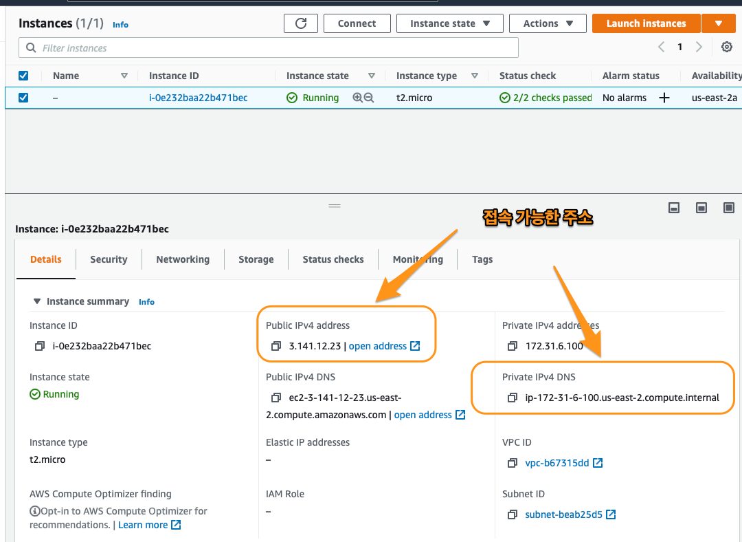 - ec2의 주소를 check한 후 ssh로 접속해보자.