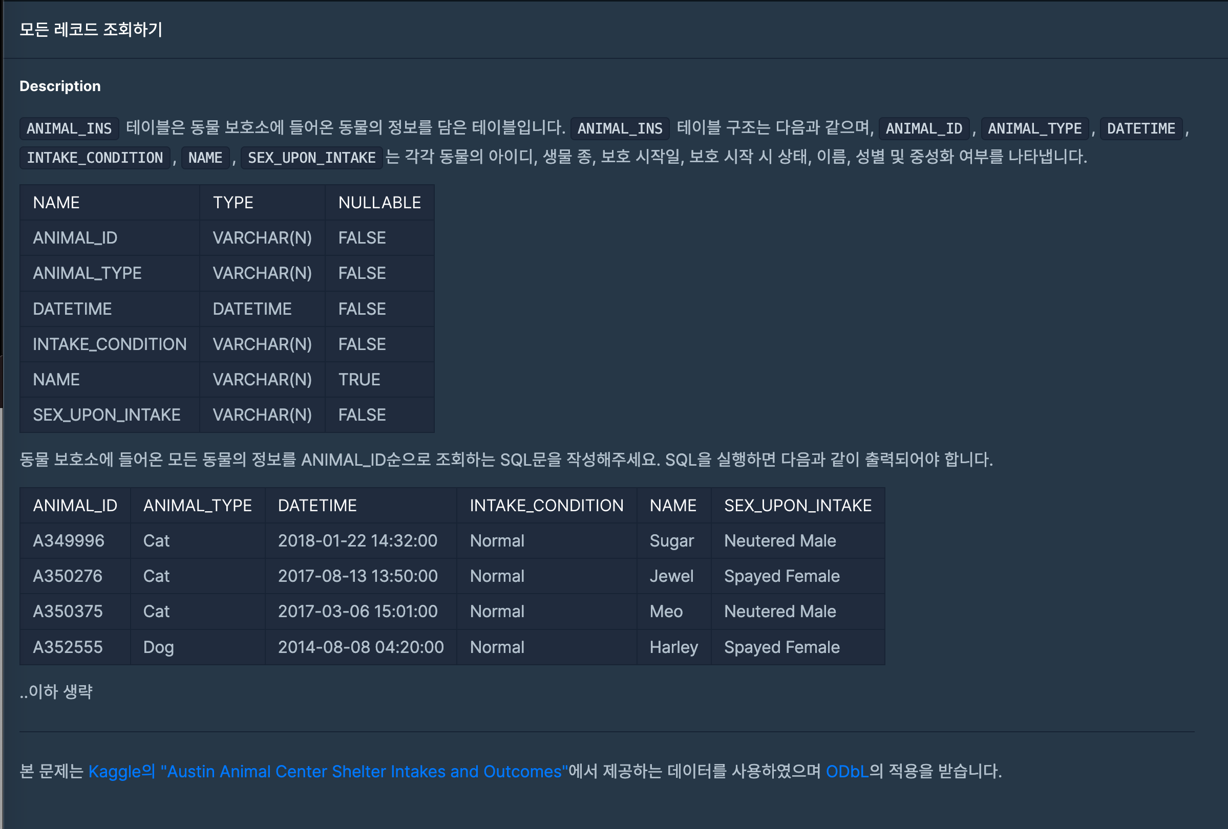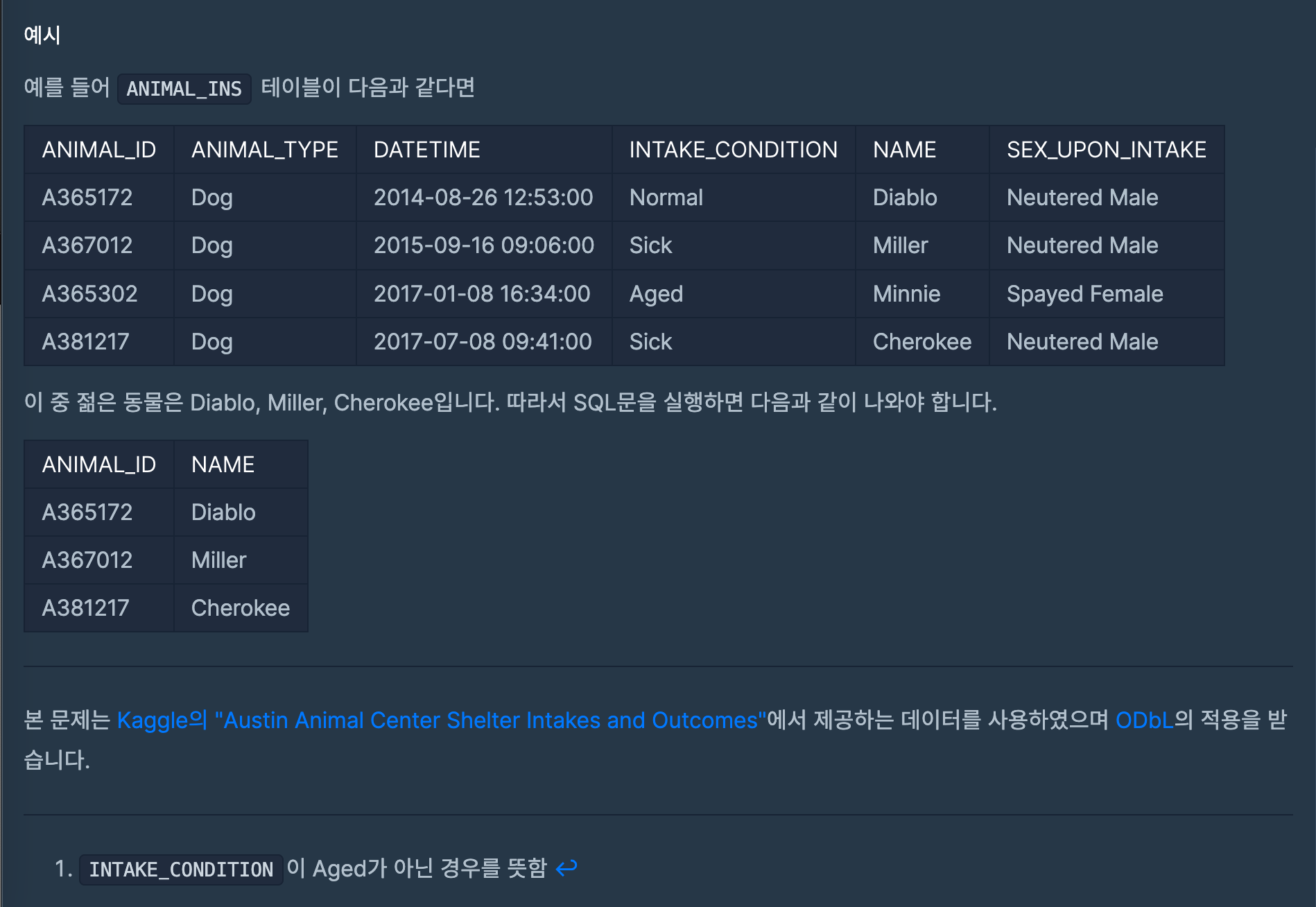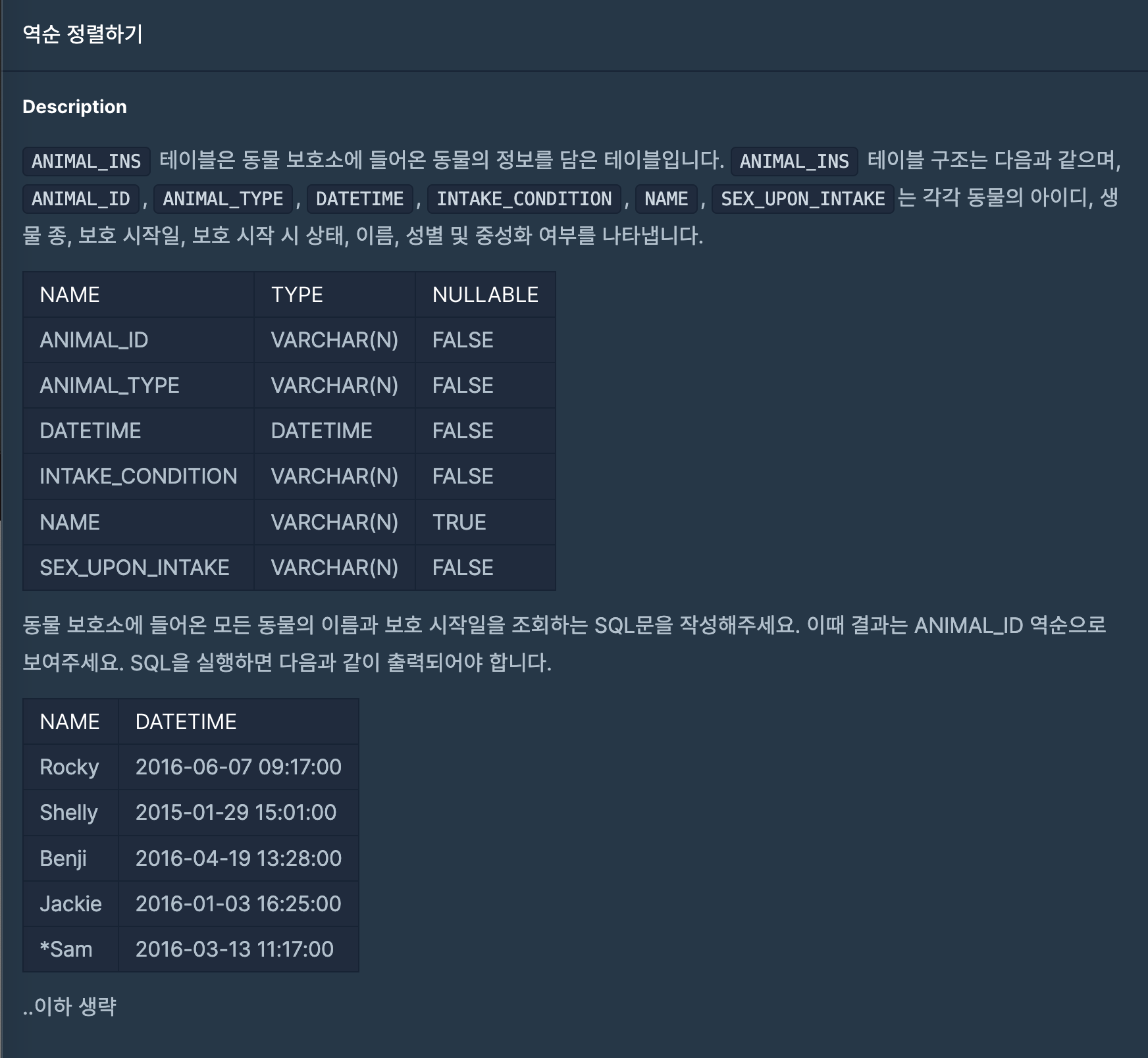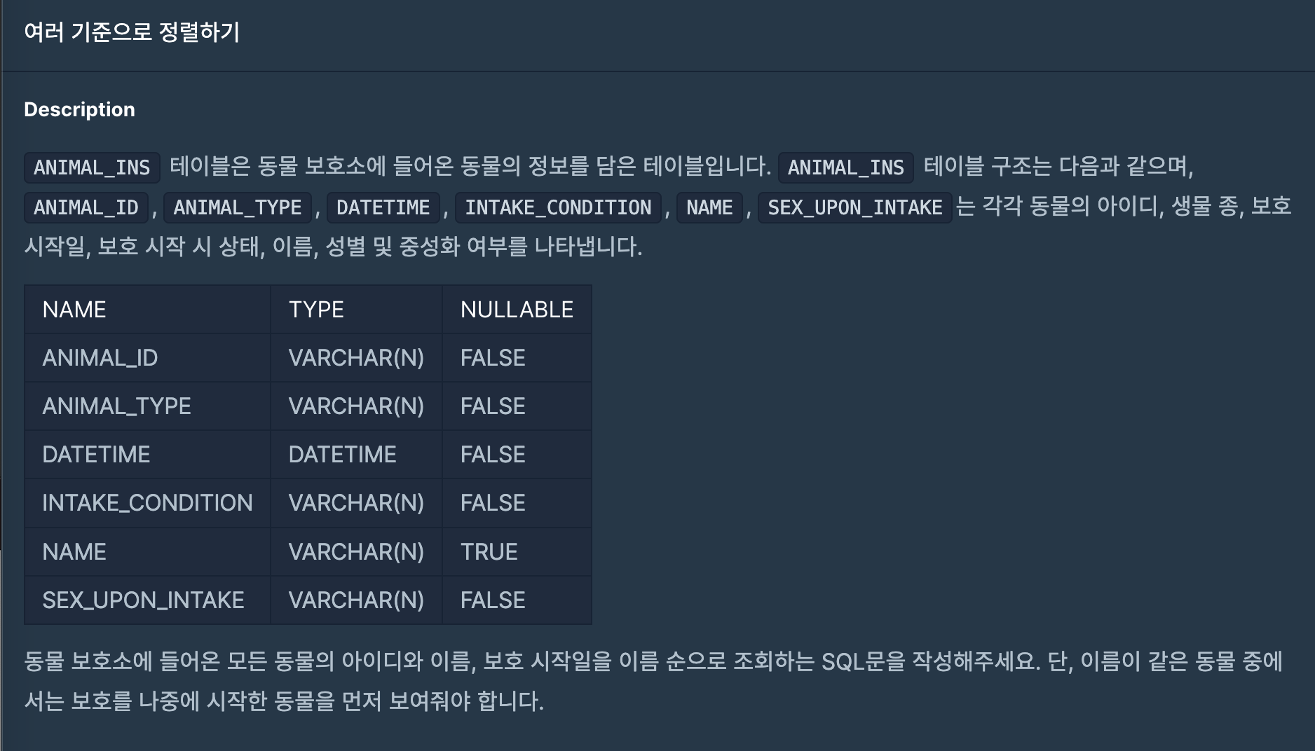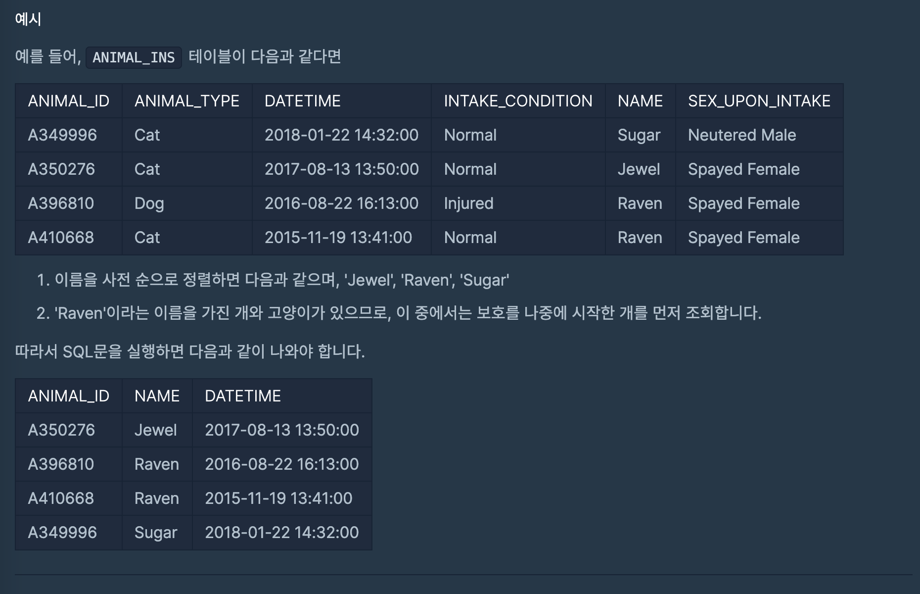 하나의 table에서 조회하는 것이다. 풀이 순서는 동일하다. from부터 시작한다.