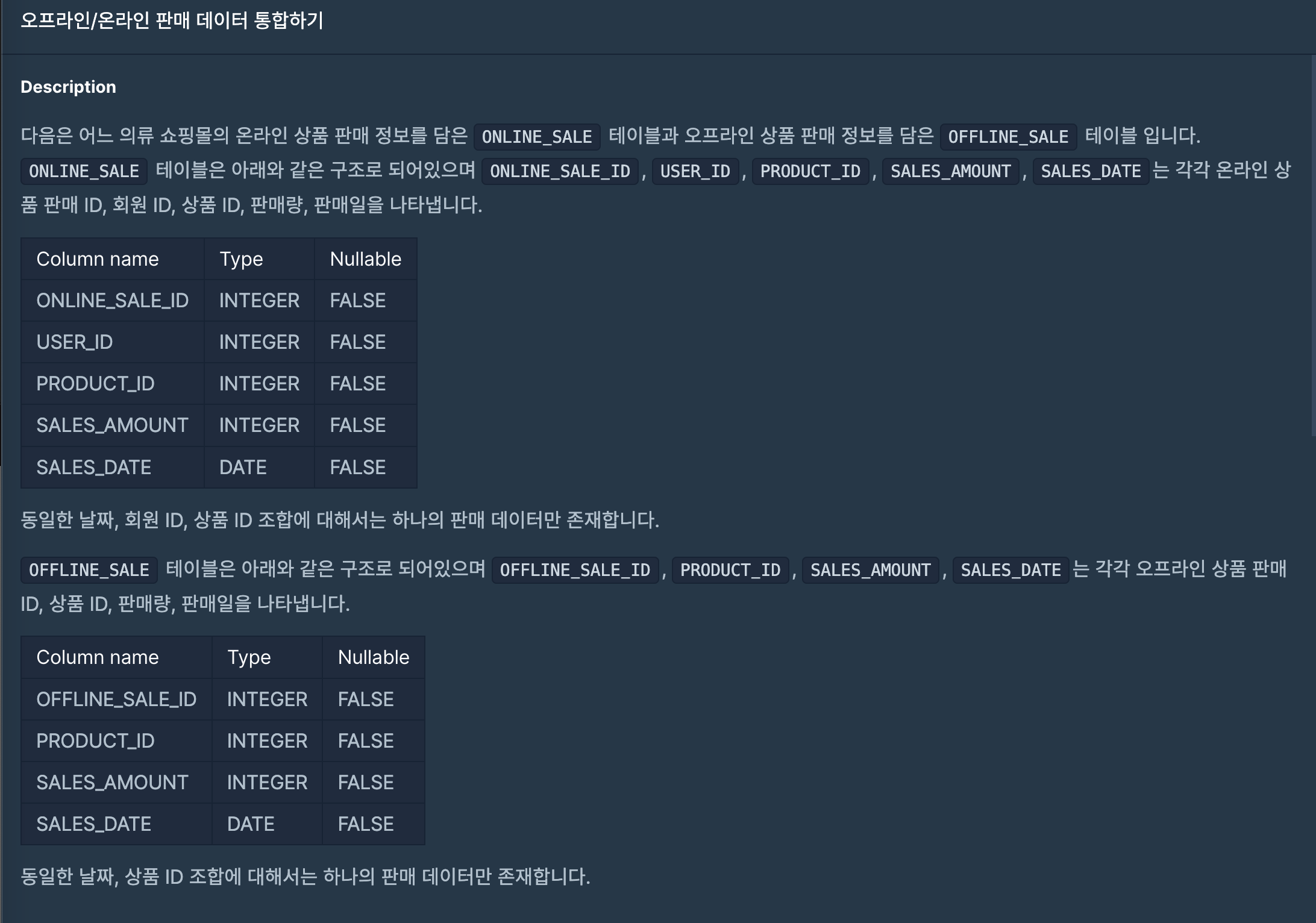 problem14: 오프라인/온라인 판매 데이터 통합하기(level4)