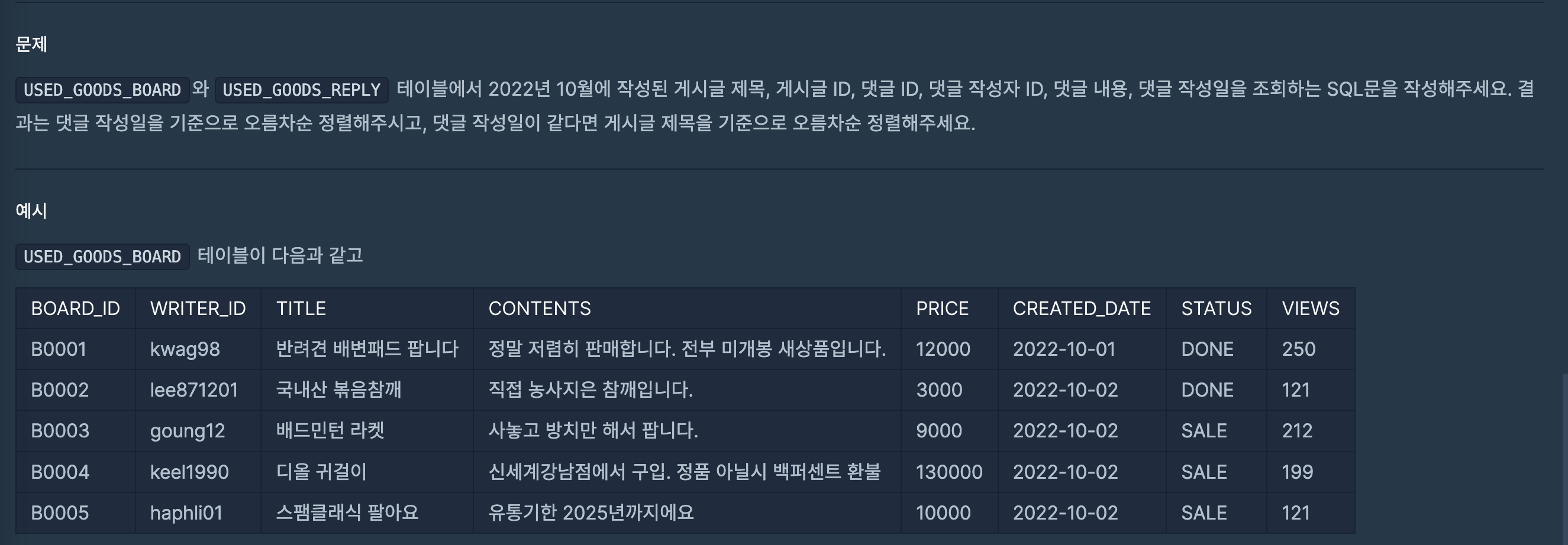 problem7: 조건에 부합하는 중고거래 댓글 조회하기(level1)